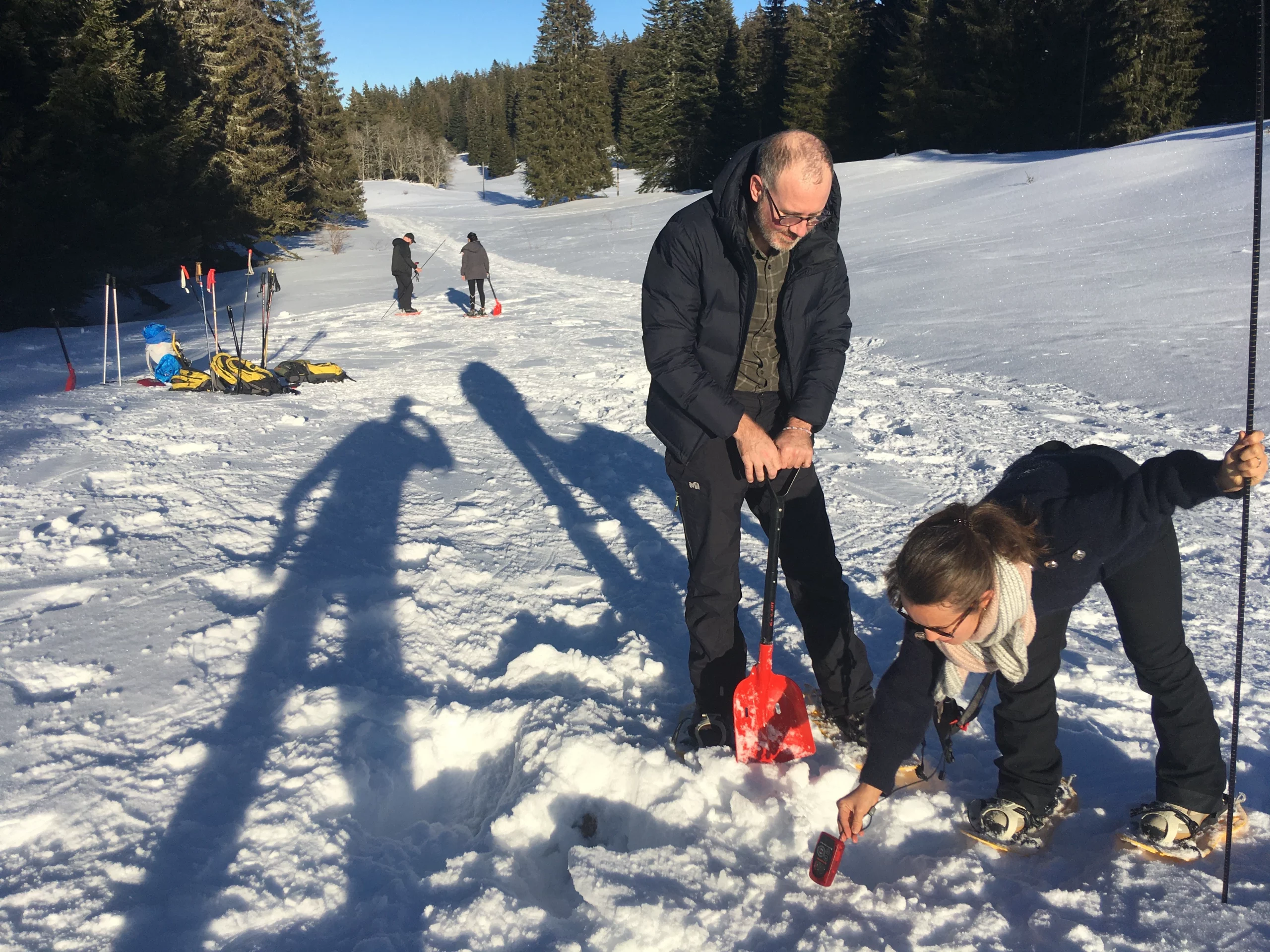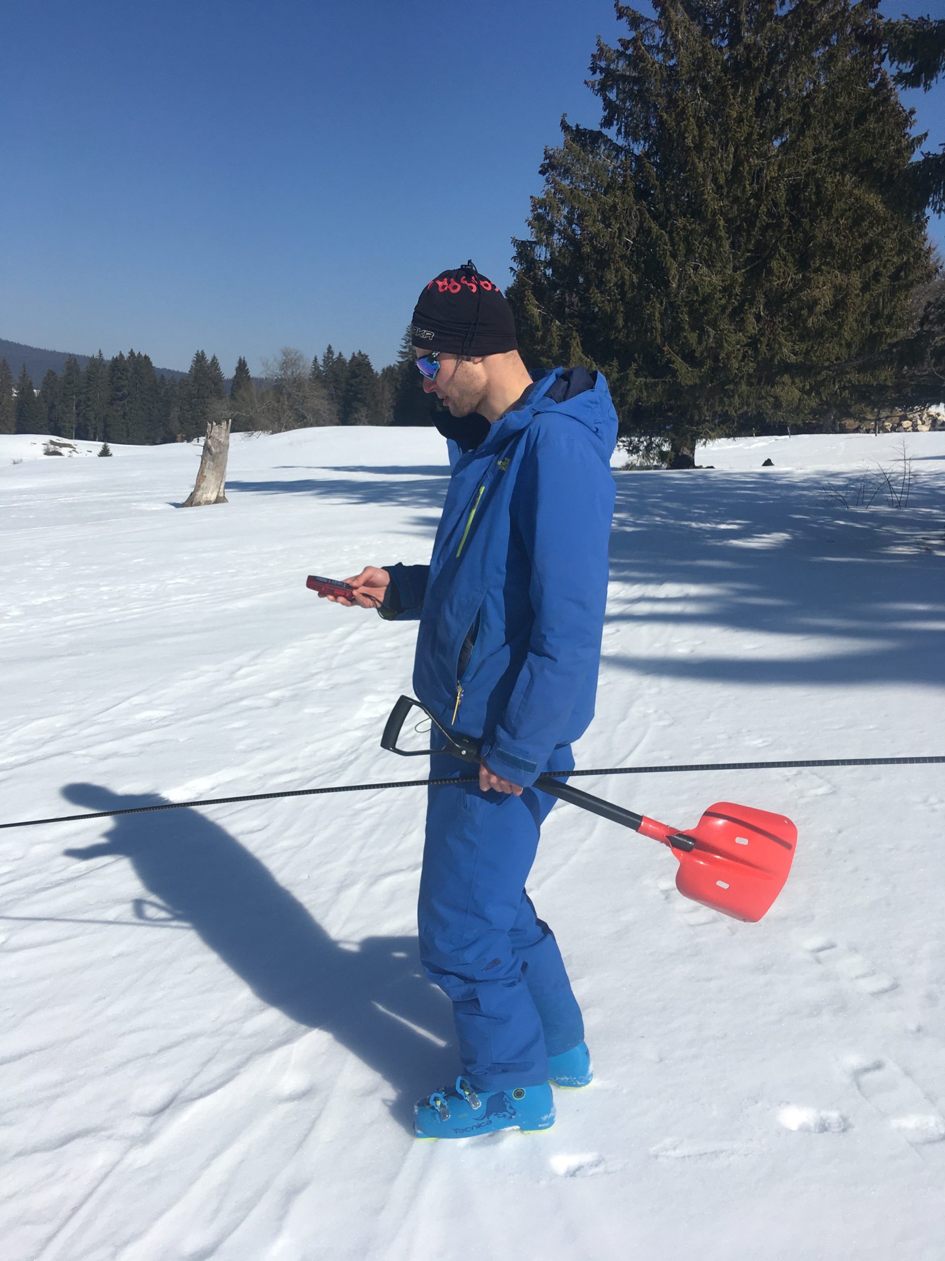 Par équipes de deux, les différents teams doivent trouver des balises électroniques enterrées sous la neige le plus rapidement possible. La distance en mètres et la direction sont leur seule aide ! Lorsque l’équipe de recherche se rapproche, la balise émet un bip-bip de plus en plus fort, mais attention ce n’est pas fini ! Il leur faudra planter une sonde avec précision dans la neige et creuser avant les 15 minutes fatidiques !
